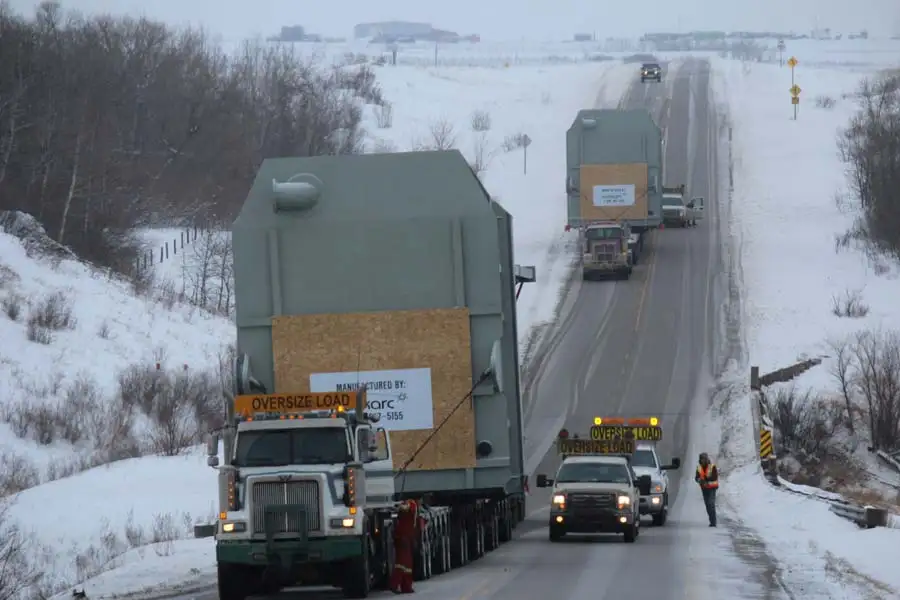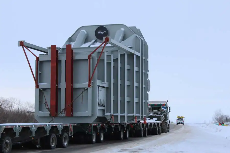 Supply (4) Slurry Pump Boxes for Imperial Oil Resources Ventures Limited (IORVL) for Northern Alberta, near Fort McMurray. The scope included design, shop detail, supply, fabrication and assembly of all structural and plate steel, supply and installation of all Chromium Carbide Overlay and AR 400 wear plate and blasting and painting of the exterior. Each Pump Box was 37’-2” long x 24’-6” wide x 18’-10” high and weighed approximately 240,000 lbs for a total weight of about 960,000 lbs.